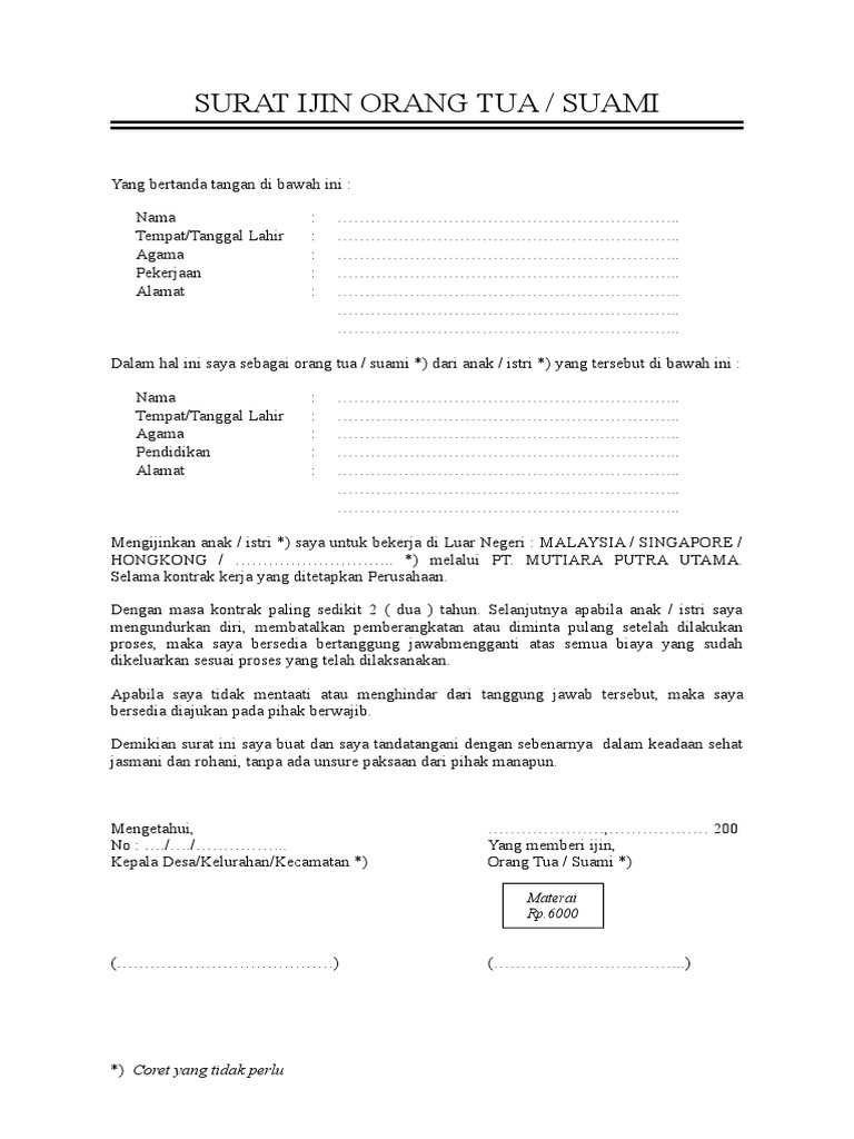 Contoh Surat Izin Orang Tua - Contoh Surat izin Orang Tua Untuk Kerja Keluar Negeri ... : Surat keterangan izin dari orang tua untuk penempatan kerjasaya yang bertanda tangan di bawah ini :